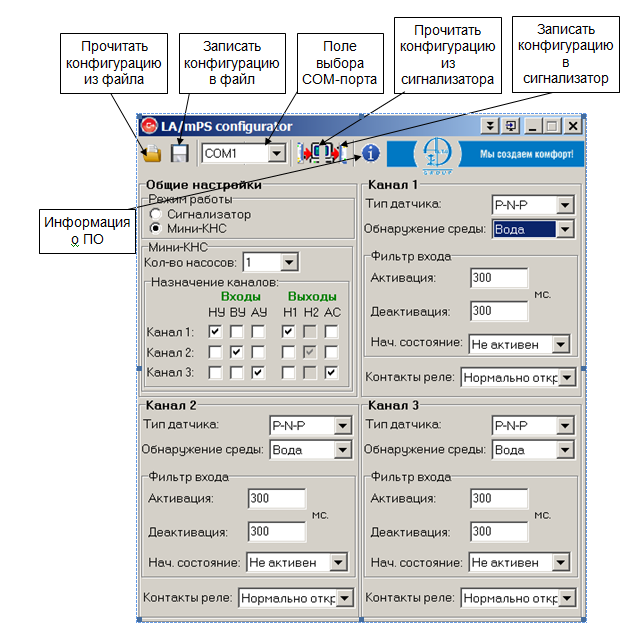 Программное обеспечение для конфигурации сигнализаторов уровня