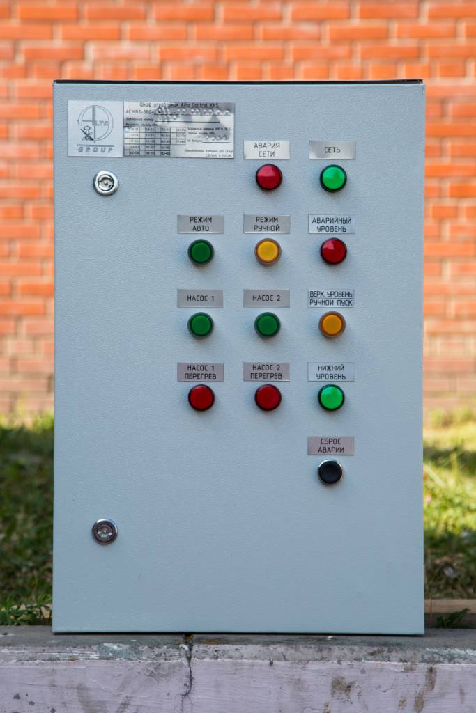 Шкаф управления анализирует сигнал от поплавковых датчиков, и перерабатывает его в команды, такие как: